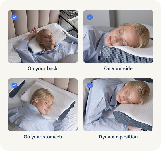 Egal ob Sie auf dem Rücken, der Seite oder dem Bauch schlafen, das Derila Kissen passt sich an und bietet Ihnen die ganze Nacht über optimale Unterstützung.